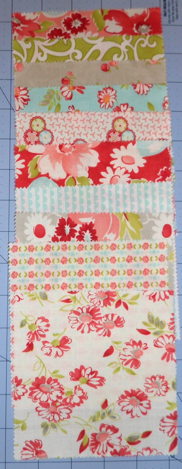 So Camille has this great pattern called Just Swell for a cover that would fit her nicely you can get it over at Thimble Blossoms. And since I just happened to have lots of her fabulous fabric… I am using a Charm pack of each Ruby and some yardage from her Vintage Modern collection (Hurry up, I think this one is running out!) and Bella Charms pack in white.