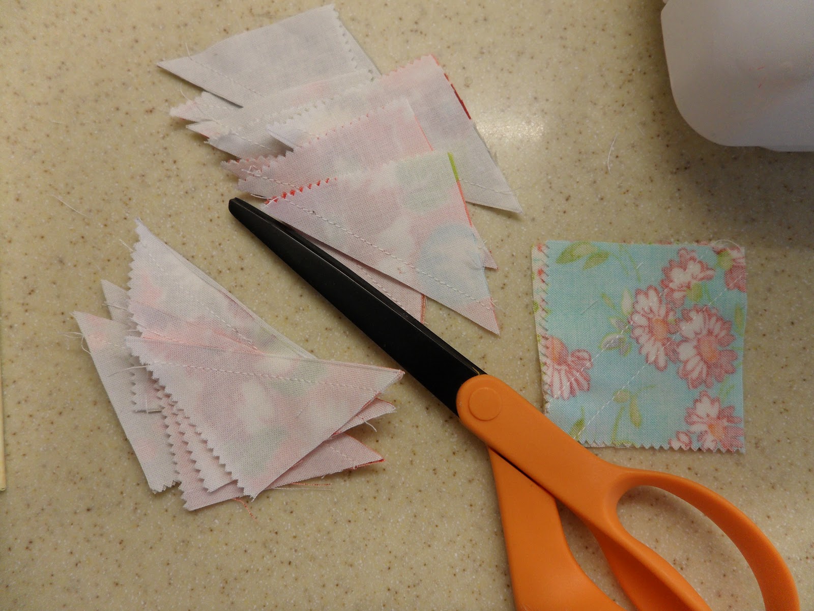 Draw a line corner to corner and sew 1/4 inch on either side, then cut, that was easy!