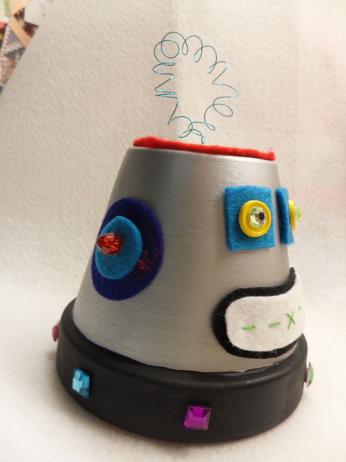 A Clay Pot ROBOT! February 7th 2013 A little craft wire, jewels and buttons, felt scraps and paint, a glue gun, some floss, and a terracotta clay pot. R O B O T Nope. I did not get this from Pinterest. Related